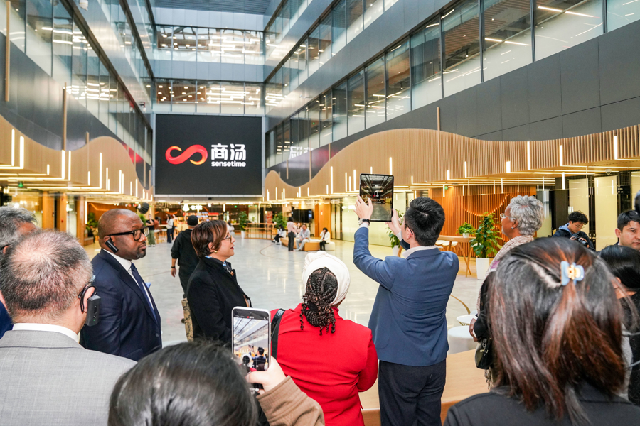 第三届全球南方智库对话会开幕在即,12月3日下午,参会外宾提前开启了一场科技探索之旅,实地参观考察了上海市人形机器人创新孵化器联动一体化服务平台与上海商汤智能科技有限公司,亲身感受上海前沿科技的蓬勃活力。